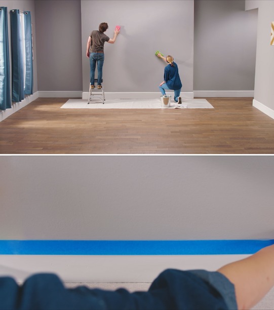 1 Protect and cover the surfaces you are not painting the floors furniture etc. Shift into neutral with these designer paint colors. Painting horizontal stripes on interior walls are not difficult.